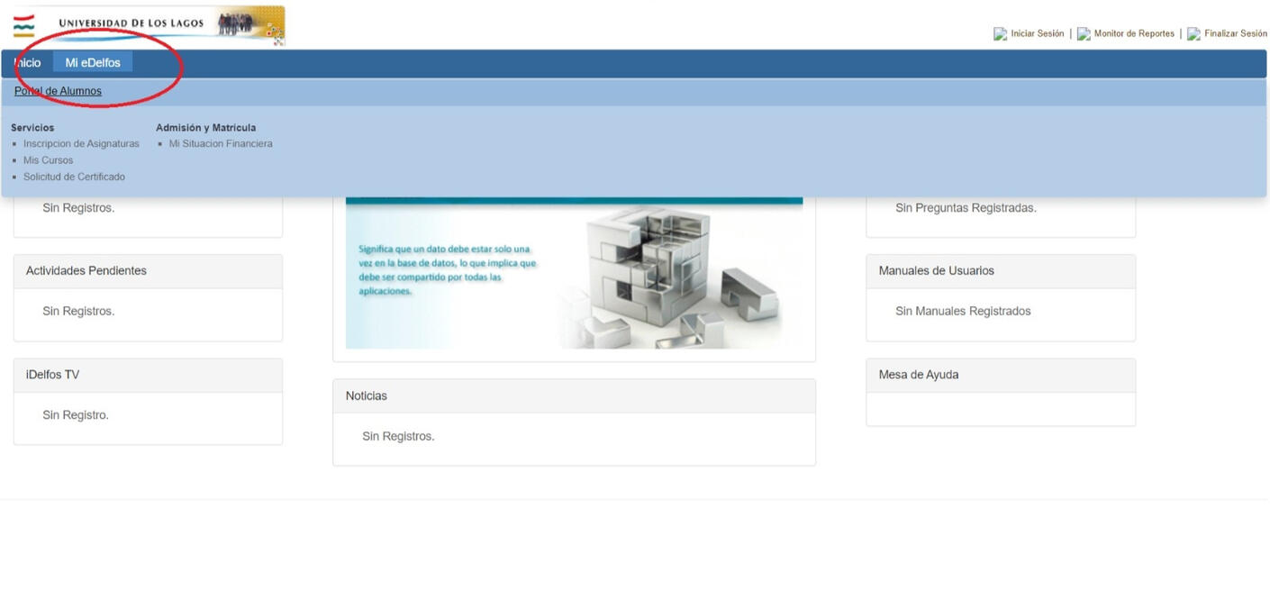 Una vez ingresado debes dirigirte a la esquina superior izquierda. Al costado de la pestaña de inicio encontrarás el apartado “Mi idelfos” Haz click en él