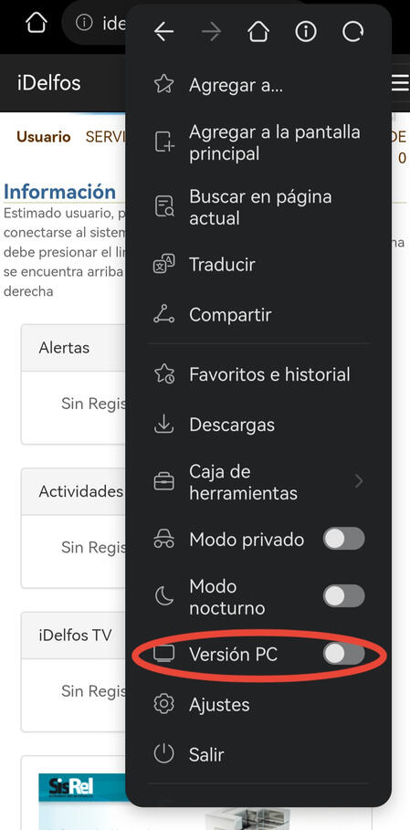 Si ingresas desde tu celular te recomendamos cambiar la vista a modo escritorio