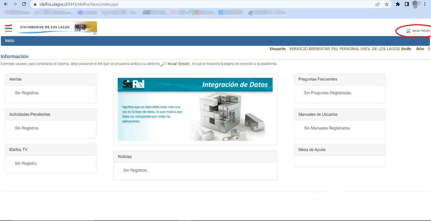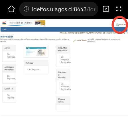 Ingresar a la plataforma idelfos.ulagos.cl y buscar en la esquina superior derecha para iniciar sesión